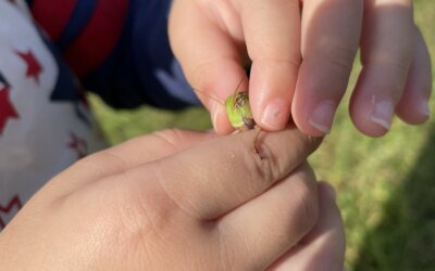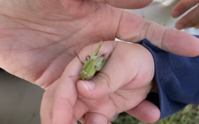 遊びに行く公園のバッタが大きくなりました。子どもたちが自分で見つけられるほどになりました。歩くたびにバッタがぴょんぴょん飛びます。